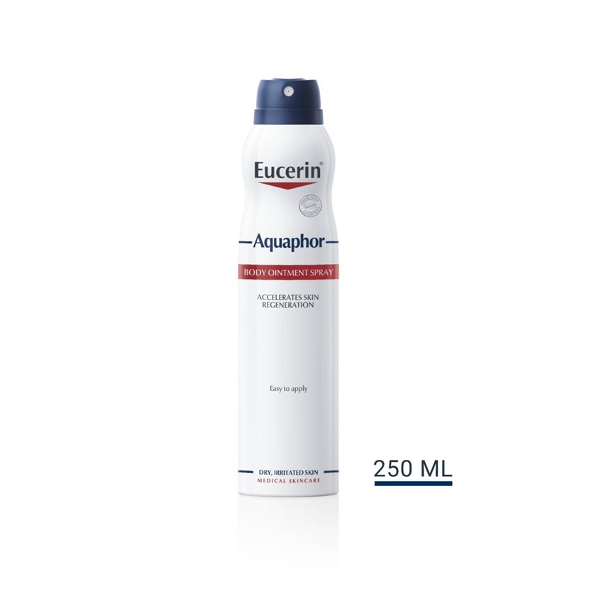 Díky inovativnímu rozprašovači je Eucerin Aquaphor Tělová mast ve spreji nejvhodnější pro použití na větší části těla, jako jsou paže, nohy, záda či trup. Umožňuje rozprašování také dnem vzhůru, je proto vhodná pro zklidnění velmi suché pokožky na těžko přístupných partiích, kde by aplikace klasické masti byla příliš obtížná. Vyvarujte se přímému stříkání na obličej či v jeho oblasti. Pokud máte velmi suchou nebo hrubou pokožku na menších částech těla, vyzkoušejte Eucerin Aquaphor Regenerační mast.