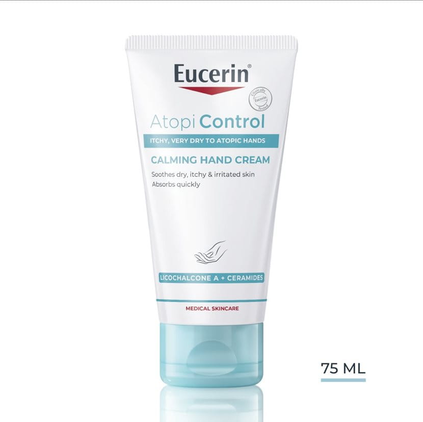 Eucerin AtopiControl Krém na ruce pokožku zjemňuje a zklidňuje. Také se rychle vstřebává, je nemastný a obsahuje jedinečný komplex aktivních složek - zklidňující licochalcon A, antibakteriální dekandiol a menthoxypropanediol (MPD) zklidňující svědění. Tento komplex, v kombinaci s vysokou koncentrací ceramidů a výtažku z ovsa setého (Avena sativa), posiluje kožní bariéru, zmírňuje suchost a pocit svědění.