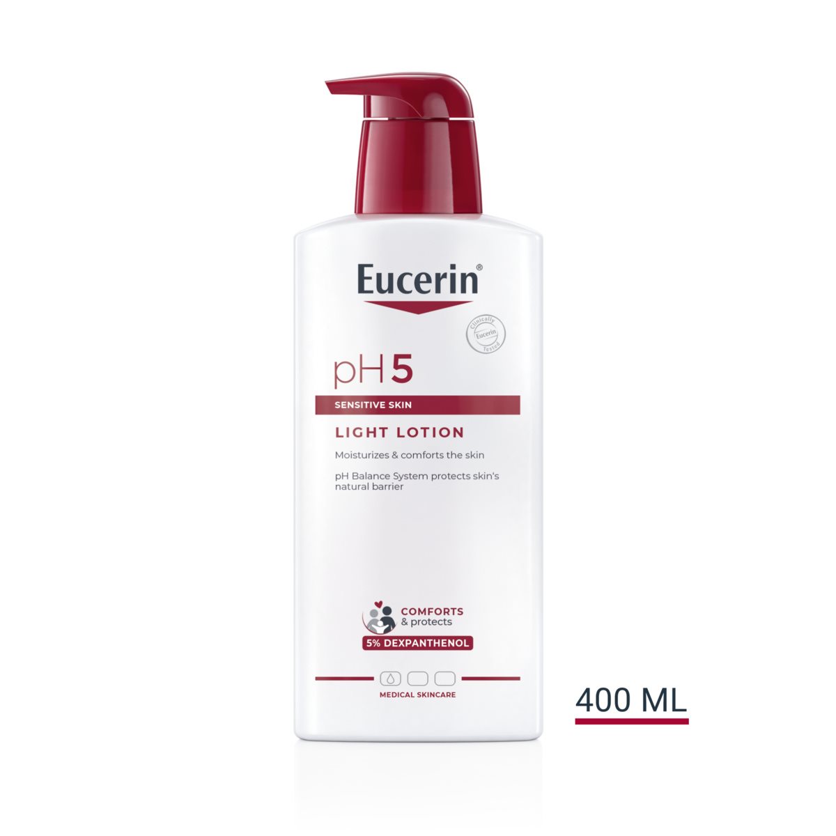 Eucerin pH5 Tělové mléko s lehkou texturou je jemný, ale účinný přípravek pro hydrataci pokožky těla, který byl speciálně vyvinut pro zvýšení odolnosti a snížení citlivosti u citlivé pokožky těla. Unikátní Eucerin pH Balance System obsahuje pH5 citrátový pufr pro obnovu a podporu optimálního pH pokožky. Tělové mléko obsahuje také dexpanthenol, účinnou složku známou svými regeneračními schopnostmi.