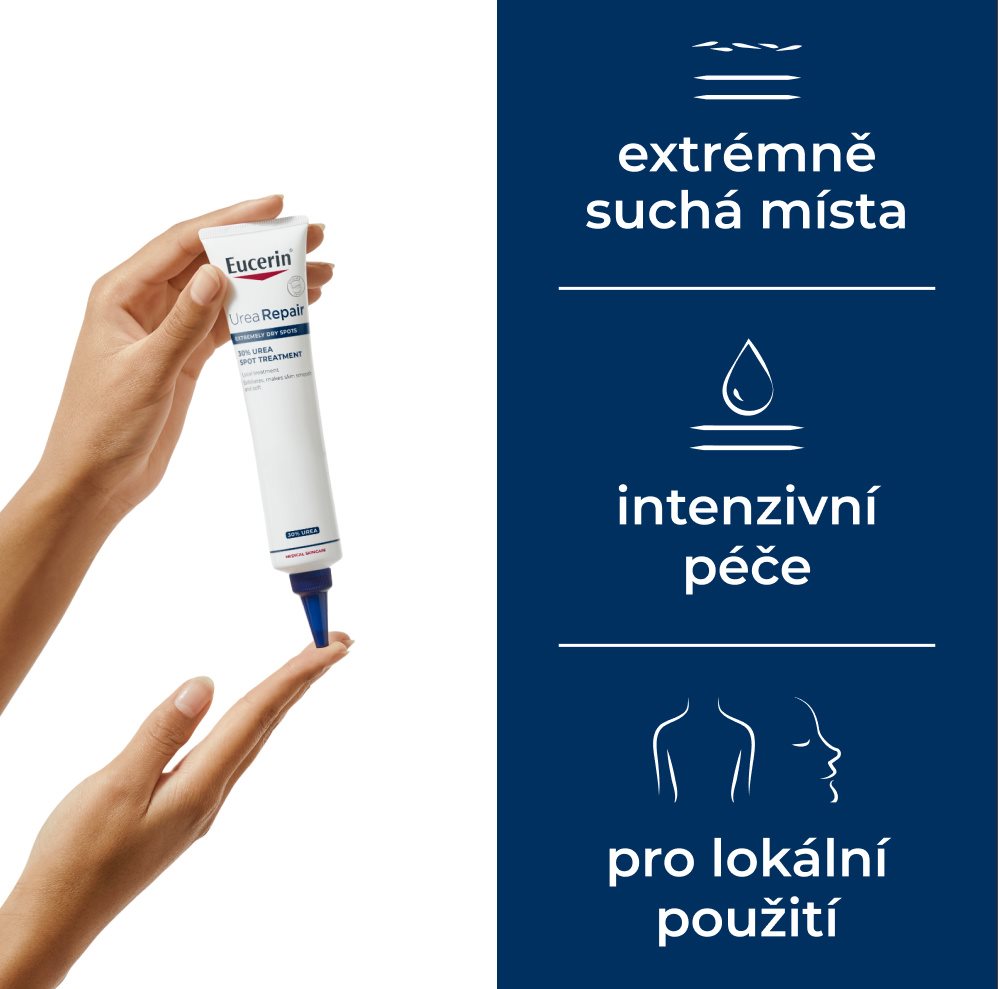 Ne. Eucerin UreaRepair 30% Urea Krém pro lokální použití byl specificky vyvinut pro lokalizované problematické plochy s extrémně suchou, hrubou, ztvrdlou pokožku se šupinkami v oblastech, jako jsou dlaně, paty, kolena nebo lokty. Nedoporučujeme jeho použití na ploše větší než 10 % povrchu pokožky. Pokud potřebujete hydratační krém pro celé tělo pro suchou, hrubou pokožku, vyzkoušejte Eucerin UreaRepair 10% Urea Tělové mléko. Pro suchou a hrubou kůži na těle doporučujeme Eucerin UreaRepair 5% Urea Tělové mléko nebo Eucerin UreaRepair 5% Urea Tělový krém.